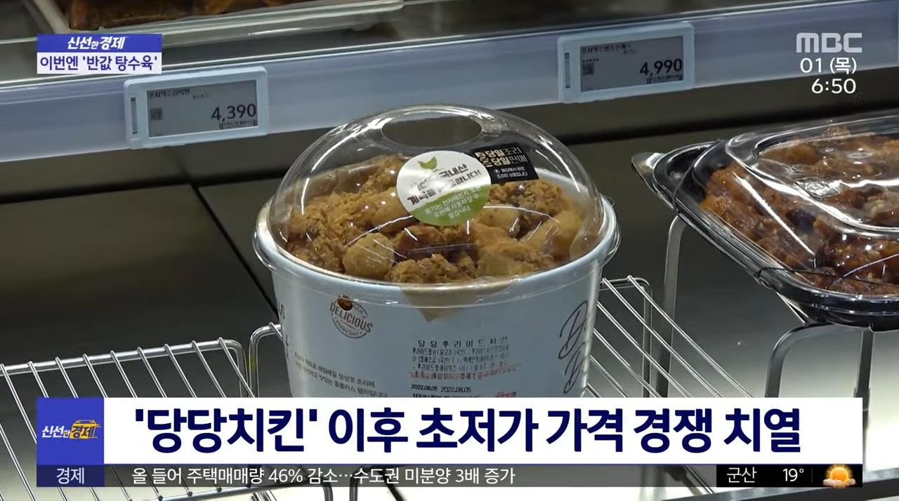 최교욱 롯데마트 조리식품개발팀장은 “탕수육에 이어 가성비 좋은 다양한 메뉴를 지속적으로 선보이겠다”라고 말했습니다. 최근 홈플러스가 6,990원짜리 '당당 치킨'을 출시하면서 홈플러스가 치킨을 6,000~10,000원에 판매하는 등 대형마트 업계에서 인기를 얻고 있습니다.