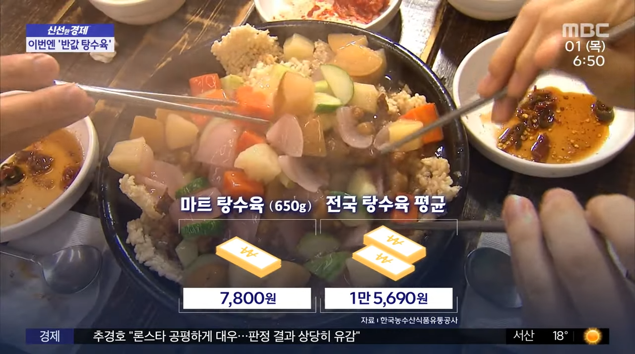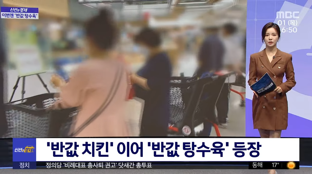 롯데마트는 탕수육을 반값에 판매합니다. 돼지고기 요리의 새콤달콤한 맛은 손님들에게 인기가 좋습니다. 롯데마트는 물가가 오르던 시기에 '탕수육 반값'을 출시했습니다. 이 인기 있는 마트는 "반값 치킨" 열풍을 일으켰습니다.