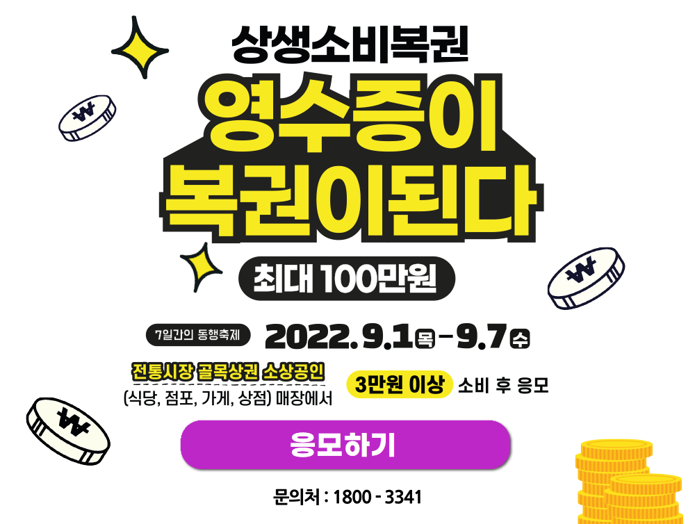 - 각 영수증은 한 번만 적용할 수 있습니다. (3만원 이상)