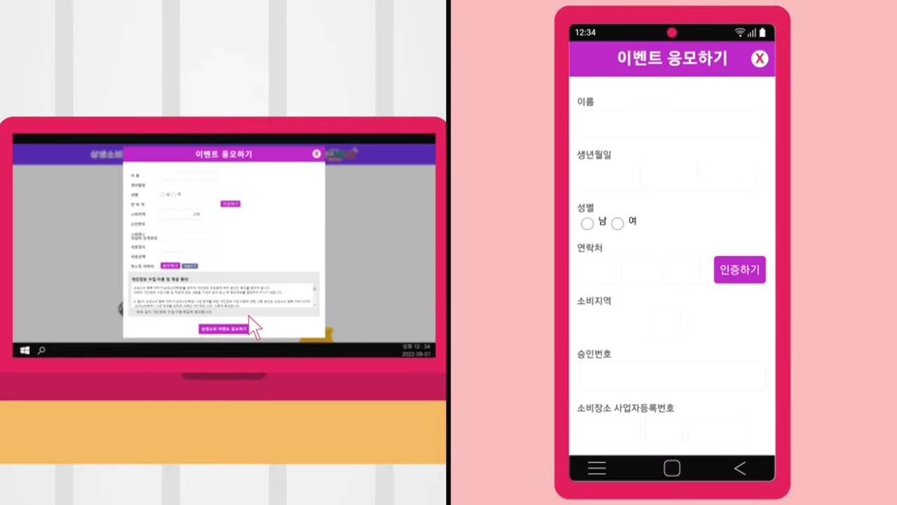 - PC 또는 휴대폰으로 윈윈소비자복권 kr 접속 후 개인정보와 영수증 정보를 입력하고 사진을 업로드 합니다.
