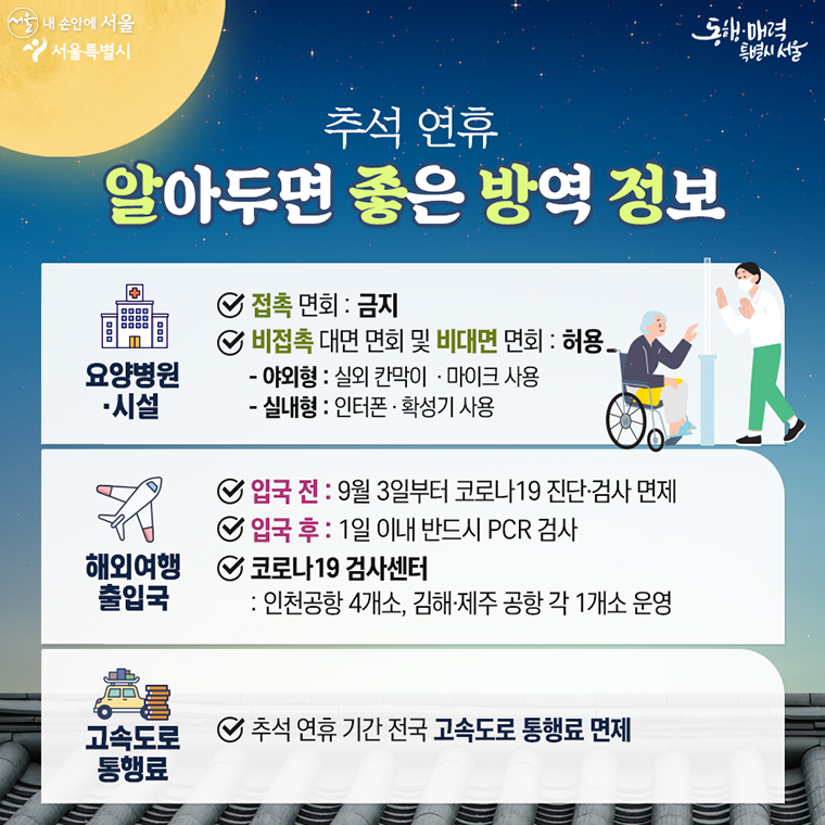 추석이 다가오고 있습니다. 정부는 사회적 거리두기 없이 첫 추석을 앞두고 8월 31일 '2022 추석 방역 및 의료조치'를 발표했다. 이번 추석은 가족모임과 방문을 무제한으로 할 수 있으며 연휴기간 고속도로 통행료가 면제된다.