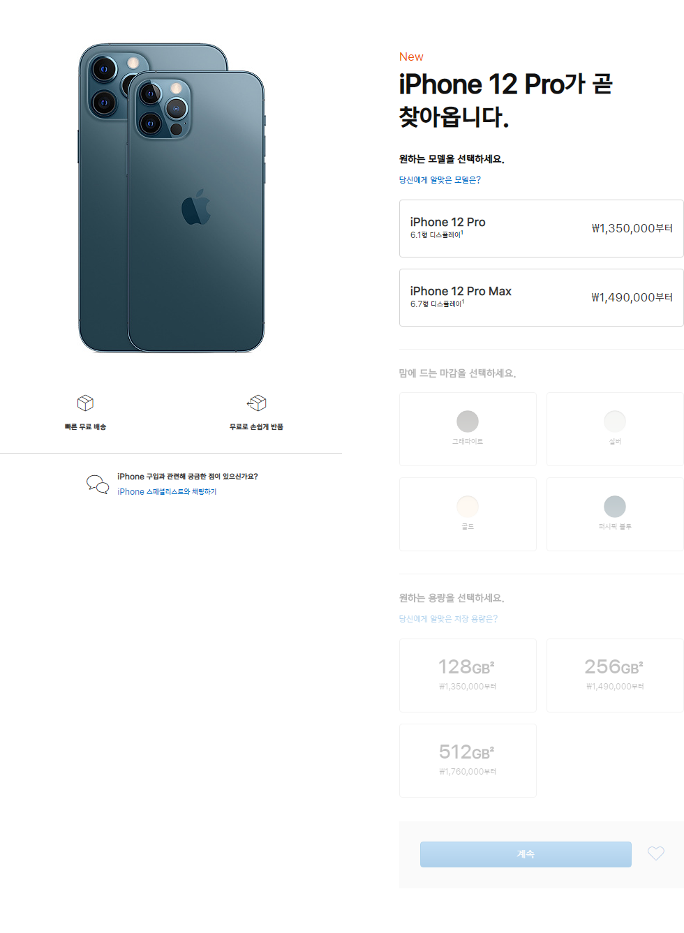애플 홈페이지에 아이폰 가격이 업데이트 되었습니다. 아이폰 12 미니는 95만원, 아이폰 12는 109만원, 아이폰 12프로는 135만원, 아이폰 프로 맥스는 149만원으로 미친 가격으로 형성되었습니다. 못살 가격은 아니지만, 가성비 제품은 결코 아니군요. 이번에도 역시 프리미엄급으로 제품이 출시되었습니다. 사실 아이폰 12 미니가 참 예뻐서 기대했었는데, 가격도 상당히 비싼 만큼 구매를 고려해봐야겠습니다.