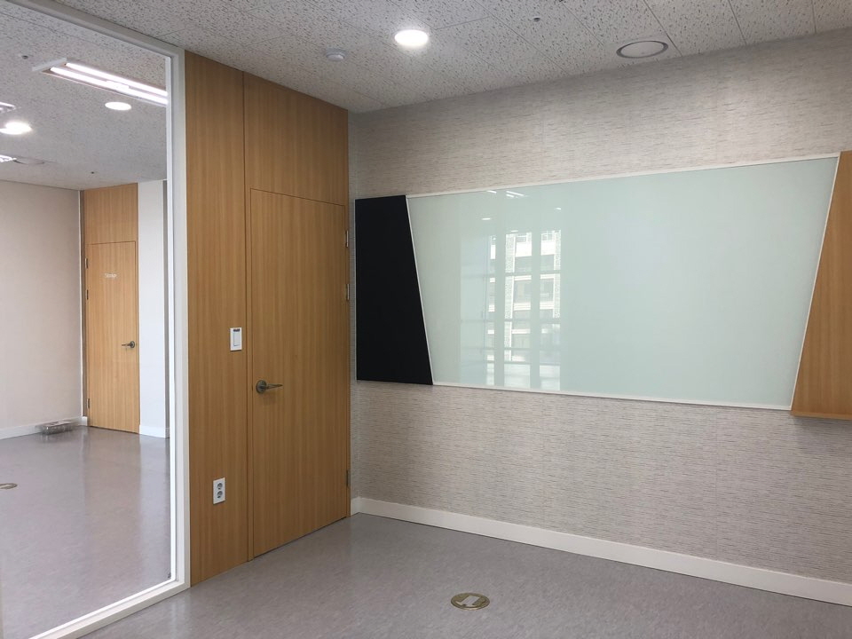 뷰도 깔끔하게 들어오고 업무 공간 배치하기도 너무 좋고 책상 배열이나 의자 등, 회의실 공간 배치하기에도 너무 좋은 인테리어라고 생각합니다. 불필요한 것은 걷어내고 딱 필요한 부분에 인테리어를 진행하는 느낌이라 실용적인 느낌입니다.