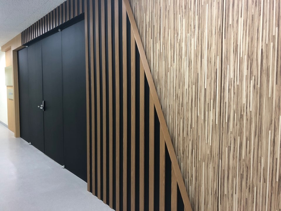 거기다가 입구 부분에는 센스 있게 조명도 달아서 요즘 트렌드에 맞는 그런 느낌을 주기도 했고 사무실이잖아요. 기업 로고도 들어가야 하고 입구 팻말도 들어가야 하고 여러모로 생각해야 할 게 많은 사무실 인테리어랍니다.