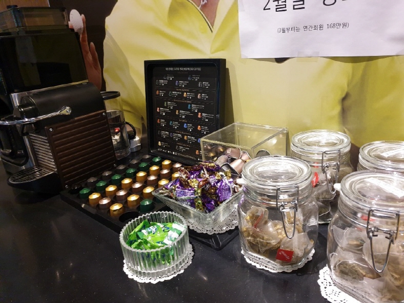 그리고 제가 놀랐던 것 중에 하나, 골프연습장 원래 이렇게 고급 진건 가요? 네스프레소 캡슐커피를 주는 곳은 처음이에요! 원래 다들.. 자판기 커피 주는 거 아닌 강 ―! 캡슐커피가 있으니까, 뭔가 고급져 보이고 저는 완전 만조쿠^^ 커피 외에도 유기농 토자자 드립, 유기농 티, 초콜릿, 사탕 등등 여러 가지가 준비되어 있어요 ―! 정말 고급지다~~