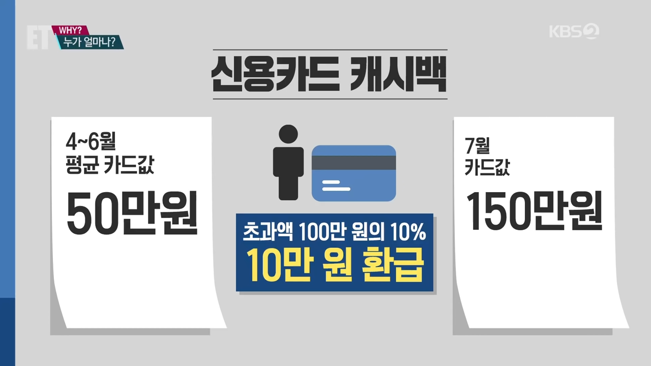 하지만 카드 캐시백은 백화점과 대형마트, 온라인 쇼핑몰, 명품 전문 매장, 유흥업소, 차량 구매 등은 혜택에서 제외되며, 이 카드 캐시백 또한 소상공인 등 취약 부문에서의 소비 유도가 주목적입니다.