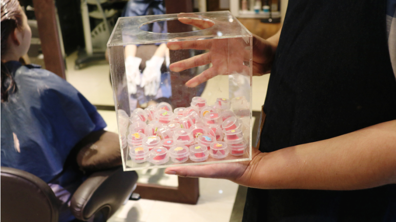 그리고 이곳에서만 있는 특별한 서비스! 바로 랜덤뽑기박스! 다른 미용실에는 없는 정말 다양한 이벤트도 하고 있었어요. 랜덤박스에서 하나를 뽑으면 상품을 얻을 수 있는데요. 저희는 트리트먼트를 증정받았어요!