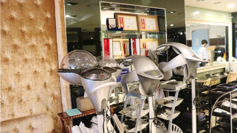 이제 슬슬 전문가의 손길이 들어갑니다! 여기 염색하는데 하나도 아프지 않다고 하더라구요. 저도 염색을 아주 가끔 해봤지만, 눈이 시렸는데 여기는 염색약이 정말 좋은 제품을 쓰는 것 같다고 했어요.