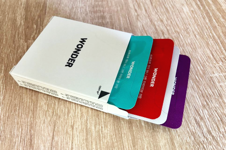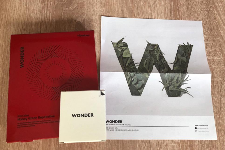 하루하루 원더 리 페러 티브 마스크 제품 구성 이렇게가 제품 구성이고요. 박스에 담겨있는 것은 마스크이고, 원더 크림 4가지도 따로 이렇게 달려있어요. 원더라는 로고가 써져있는 박스에는 원더 크림 4종 트라이얼 세트가 들어있답니다.