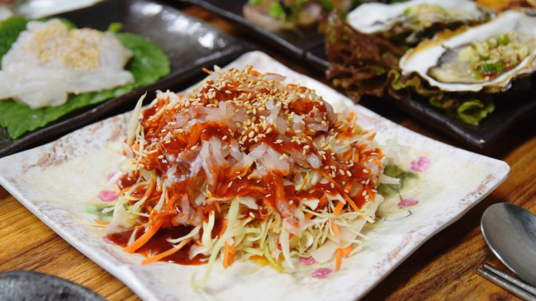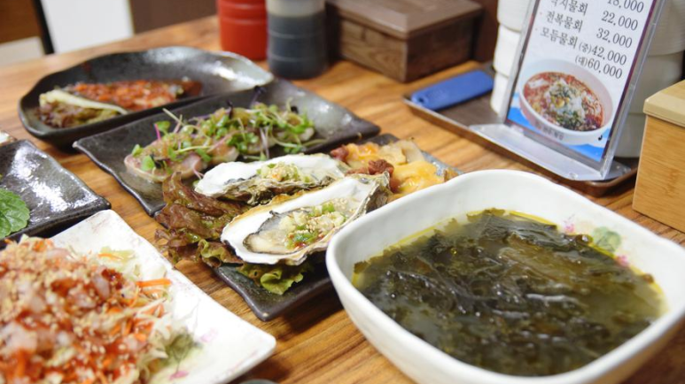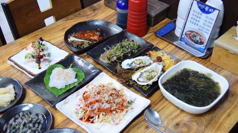 게다가 곁들이찬 들도 그냥 개수를 채우려고 만드는 그런 음식들이 아니라 해산물들이 잔뜩 그리고 맛있기로 소문난 굴은 물론에다가 해삼부터 다양하게 준비가 되어 있더라고요.