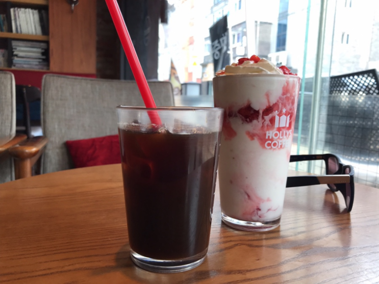 아직 이마트가긴 시간이 많이 이른걸, 가기 전에 들린 할리스커피에서 아메리카노 하나와 딸기 치즈케익 할라치노 이렇게 주문을 했다. 참 카페에 올 때마다 느끼는 거지만 음료수 가격이 정말 비싸다. 예전에는 그래도 크게 비싸다는 생각은 안했던거 같은데, 나날이 갈 수록 가격이 비싸지는 것 같은 기분이다.