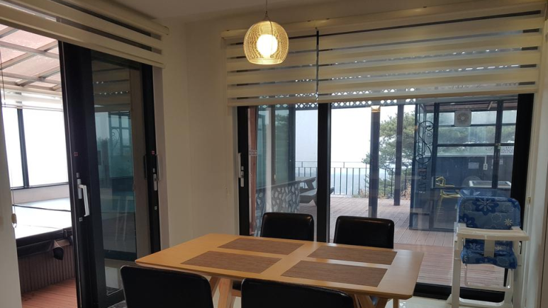 마치 한 폭의 그림을 걸어둔 것 같았어요. 속이 시원한 느낌이 저절로 힐링되는 것 같아요. 침실에도 텔레비전이 있어요. 너무 편안해서 이곳이 저희 집이었으면 좋겠다는 생각이 들었어요. 침구도 여러 사람이 사용했다는 생각이 안들만큼 깔끔했어요. 좋은 향기도 나는 게 이사 온 첫날 같은 느낌.