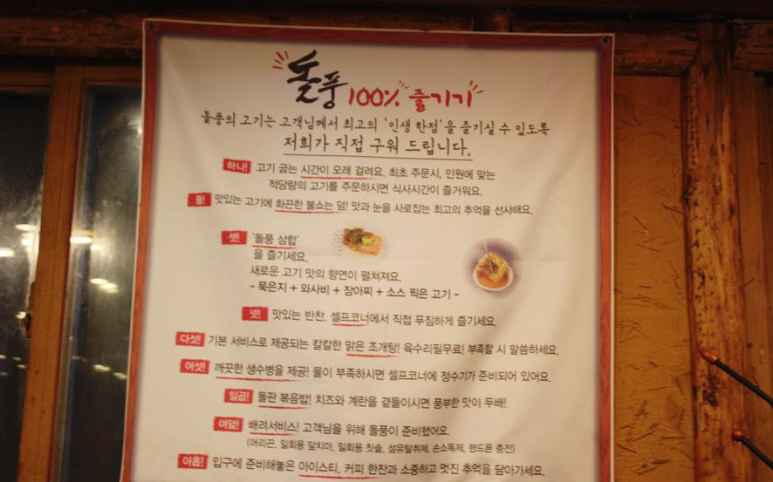 돌풍 고기집의 특징! 돌풍 100% 즐기기 다른 식당에 비해서 여기는 고기를 굽는 시간이 오래 걸린다고 해요. 그리고 화끈한 불쇼는 덤 오늘 고기 구울 때 불 쇼 볼 수 있는건가요!