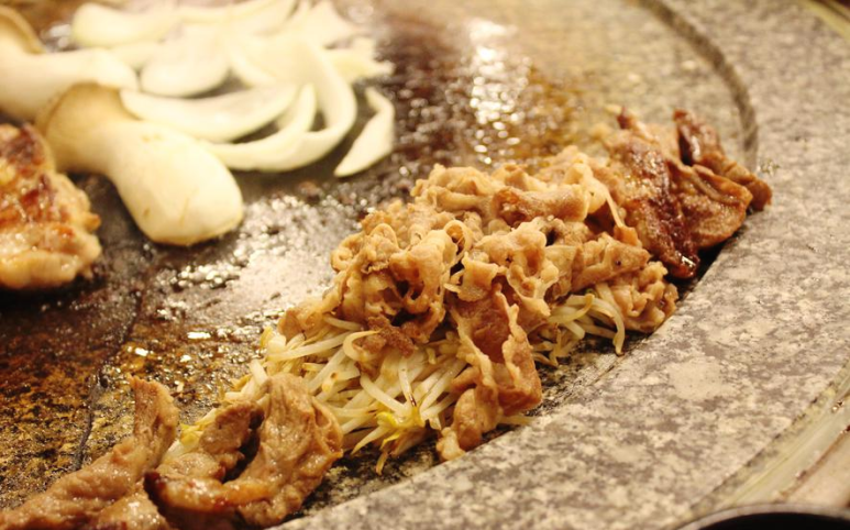 맛도 좋고 직원분께서 직접 구워주시니까 더 좋다! 고기가 딱 적절하게 돌판에서 구워지고 있어요. 이럴 때는 김치도 같이 구워먹으면 더 맛있죠. 숙수나물 구워주신거랑 고기랑 김치랑 쌈싸서 먹으면 진짜 맛있어요. 한번 꼭 드셔보셔요.
