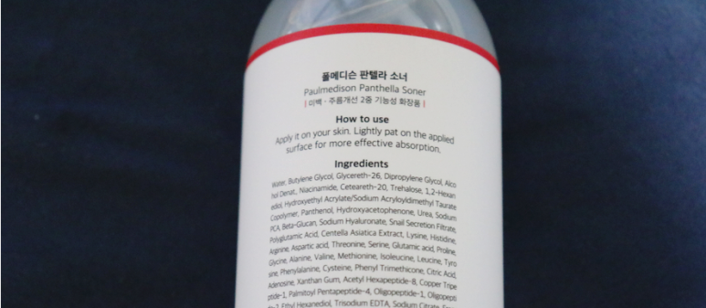 이 제품은 판테놀과 센텔라아시아티카 성분의 토너라고 하는데요. 의약품처럼 보이기도 하는 이 토너는 기초화장품으로 매우 좋은 제품!