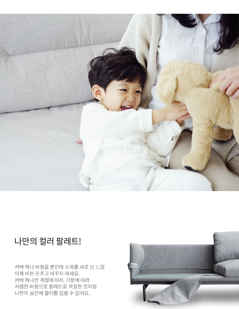 좋은 원단을 쓰니까 세탁하는 것도 쉬운거겠죠. 그래서 제가 더 반했답니다! 자, 이제 디자인도 알아봤고 어떤 원단을 사용했는지도 살펴봤으니까 색깔도 한번 살펴볼까요? 기본적으로 커버를 씌워서 사용이 가능하기 때문에 커버만 바꾸면 컬러도 바꿀 수 있어요.