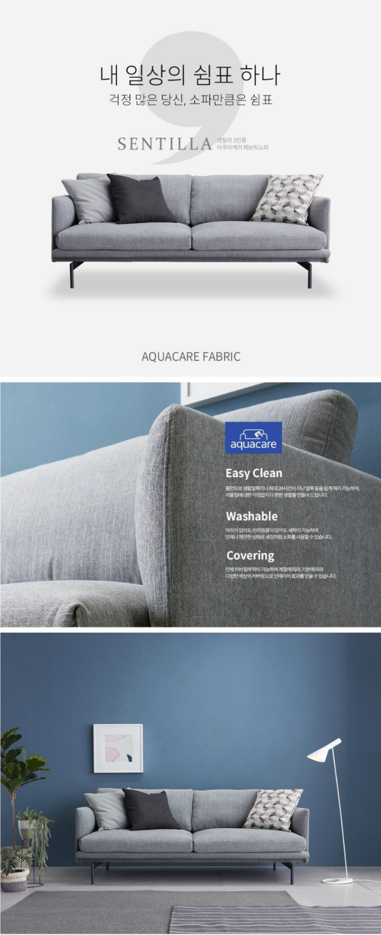 [아쿠아케어] 센틸라 3인용 패브릭소파 [AK01-1] 그레이 : 780,000원 그리고 대표적인 소파는 센틸라 3인용 패브릭소파입니다. 이거는 모던한 파스텔 컬러와 잘 어울리는 그레이컬러의 소파입니다. 모던한 디자인이 인상적인 이 소파는 현대적인 라이프스타일을 추구하는 사람들의 작업실이나 거실 등에 잘 어울리는 소파라고 생각합니다.