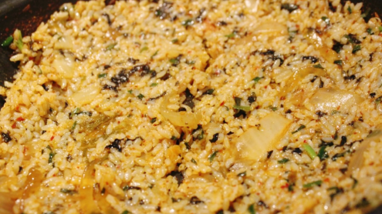 볶음밥을 올려놓고 휘젓휘젓, 어느새 고소한 맛과 달콤한 맛이 잘 어울리는 볶음밥이 탄생했답니다.