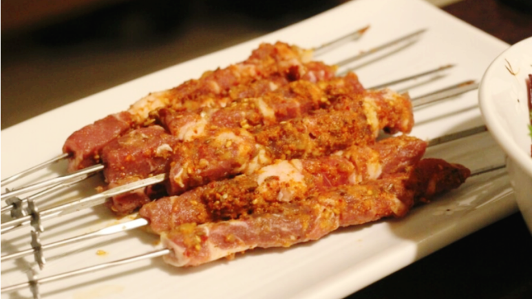프리미엄 양 갈비를 구울 때와는 다르게 이런 양 꼬치 틀에다가 양 꼬치를 구워요.