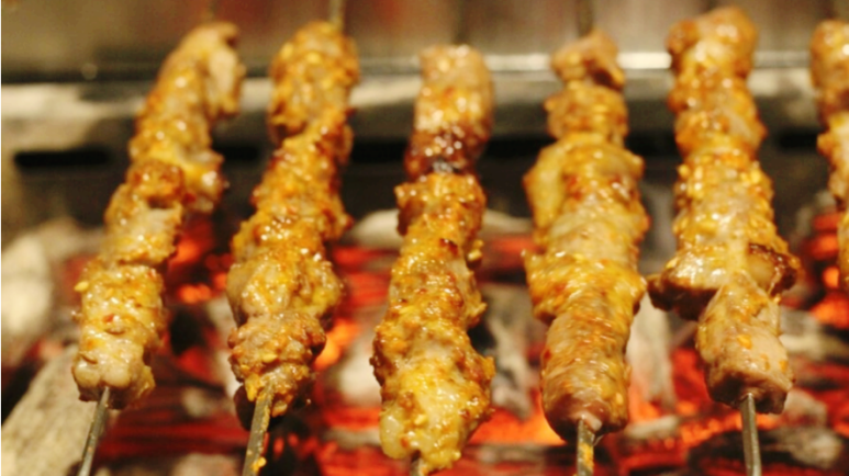 노릇노릇 돌리면서 양 꼬치가 익어가는 중. 보기만 해도 맛있을 것 같지 않나요?