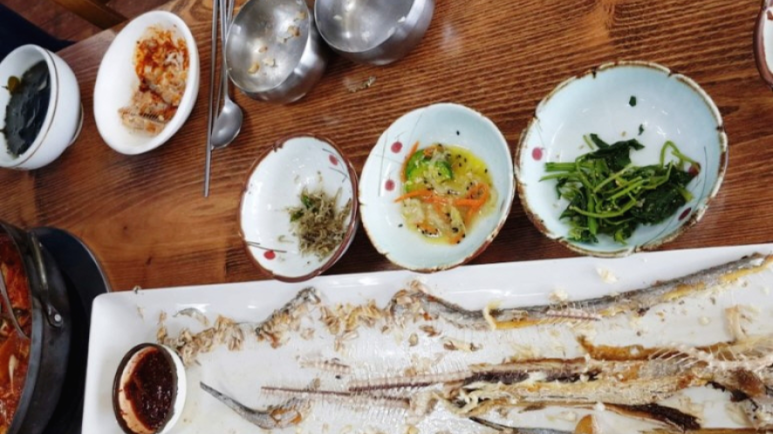 거제도 맛집 지세포 굴구이는 계절음식 전문점인데, 반찬들이 정말 알차게 나온다. 뭔가 되게 친근한 집반찬인 것 같고 정말 맛있었다. 일단 겨울에는 당연히 거제도 굴이 유명하니까 굴구이가 주 메뉴이지만, 인근에서 풀치낚시(갈치낚시) 등을 하는것으로 보아 지금은 갈치가 제철인것 같았다.