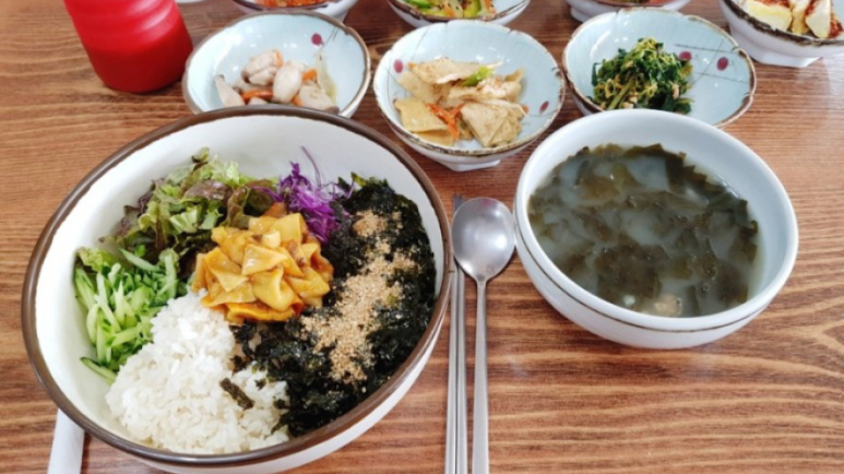 그만큼 식당을 오래하고 전통과 경력이 오래된 맛집은 맛의 깊이가 남다르다. 마치 음식에 내공이 쌓인 느낌이다. 멍게비빔밥과 성게비빔밥 그리고 기본반찬 기본반찬이랑 비빔밥까지 해서 상차림이 깔끔하게 나온다. 메뉴도 되게 싱싱하고 잘 담아주셔서 먹기에 좋았다.