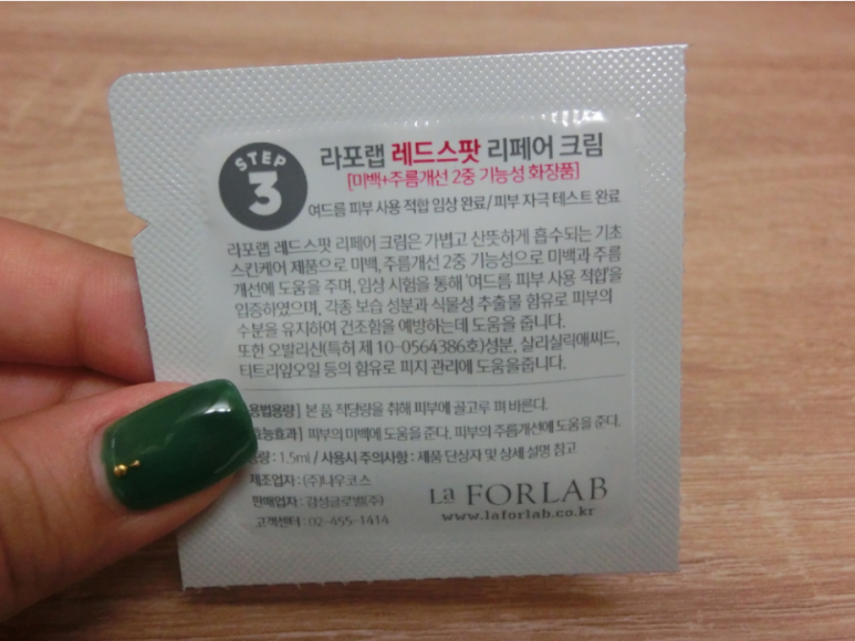수분 마스크팩 추천 라포랩 레드 스폿 센텔라 화이트닝 마스크 Step.3 그리고 마지막으로 바로, 세 번째 크림을 발라주면 마무리가 됩니다. 스탭 별로 사용하는 기초 케어인데요. 피부가 확실히 좋아지는 느낌이 듭니다. 남은 에센스는 피부를 가볍게 발라서 두드려서, 흡수해주시면 됩니다.