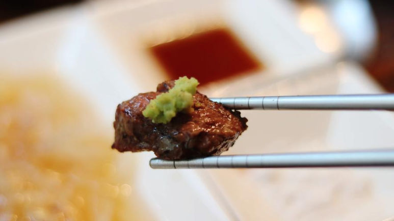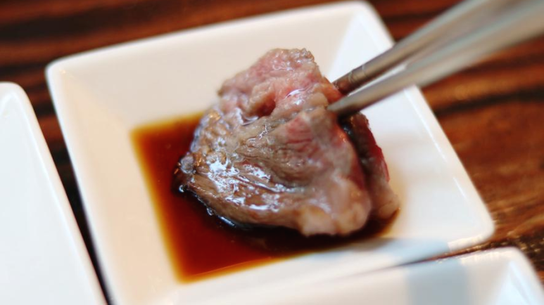 소스에도 찍어서 한입, 이 소스 고기맛을 많이 헤치지도 않으면서 너무 맜이있었어요. 그리고 고추냉이에 올려서 한입, 소 고이와 고추냉이의 조합은 말이 필요 없죠? 혹시 안 드셔 보신 분이 계신다면 지금 당장 달려 나가서 드셔 보셔야 합니다!