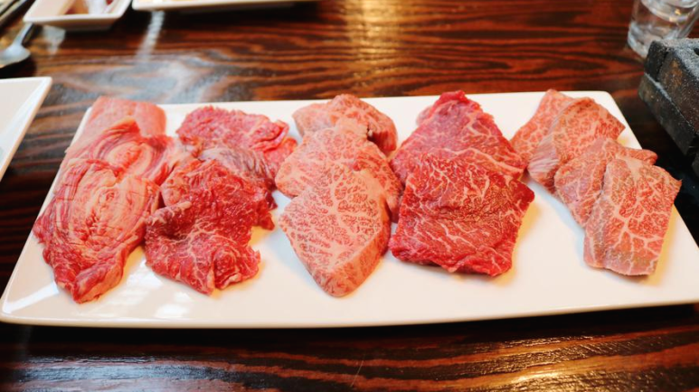 밑반찬의 정갈함에 감탄하고 있을 때쯤 저희가 시킨 B세트와 양갈비가 나왔답니다. B세트는 1인의 150g이고 4인 기준 600g이고 구성은 사진에 보이는 차례대로 갈빗살, 등심, 꽃살, 치마살, 살치살이랍니다. 저희가 주문한 메뉴는 300g입니다.
