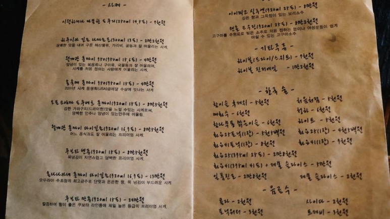 40,000원에 사라 가락국수, 얼큰 나베, 메로구이, 나가사키 짬뽕 등등 다양한 그때그때 맞는 메뉴로 랜덤으로 안주 두 가지가 제공된다고 하니 이것이야 말로 개 혜자 아닌가요? 친구들끼리 가볍게 방문해서 주방장 마음대로라는 메뉴를 시켜서 소주 한잔 기울이면서 진지한 이야기부터 가벼운 이야기를 떠들기 정말 좋은 장소랍니다.
