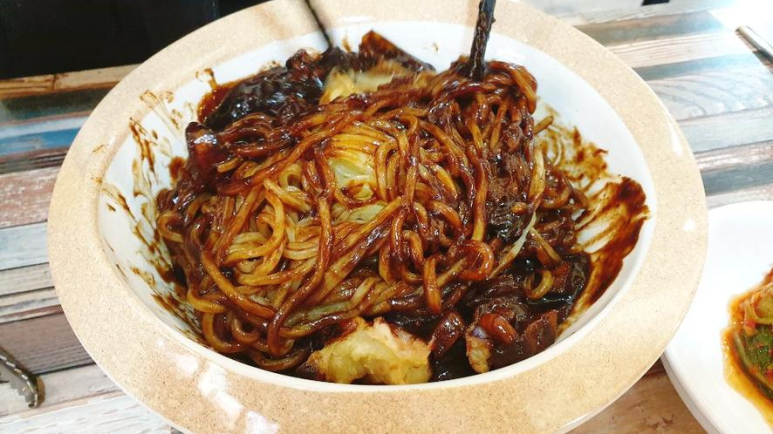 이제 제대로 한입 해봅니다. 진한 짜장 소스와 바삭바삭 문어 튀김이 느끼하지 않고 정말 담백했어요. 중간중간에 함께 씹히는 양파와 새우살도 궁합이 너무 좋았어요. 저는 짬뽕을 기대했는데 짜장도 기대 이상 너무너무 맛있었어요. 결론은 다 맛있었다는 얘기인 거 아시죠? 진짜 여기 성산일출봉 간다면. 가볼만한 성산 가볼만한 곳입니다!