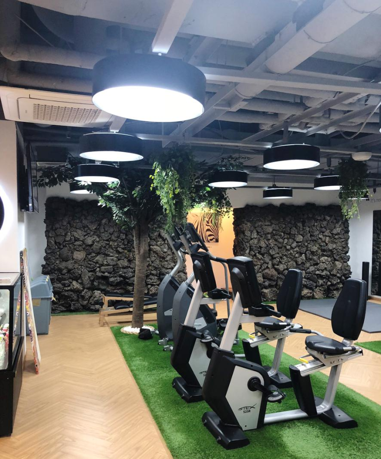 조명도 예쁘고 너무 비추지도 않고 여기서 운동하면 그냥 기분이 좋은 것 같아요. 확실히 러닝머신을 하고 나면 그날 하루는 기분이 좋고 경쾌한 것 같더라고요! 여기만 보면 마치 제주도에 온 것 같은 그런 느낌이 들기도 하는데요. 인테리어 예뻐요.
