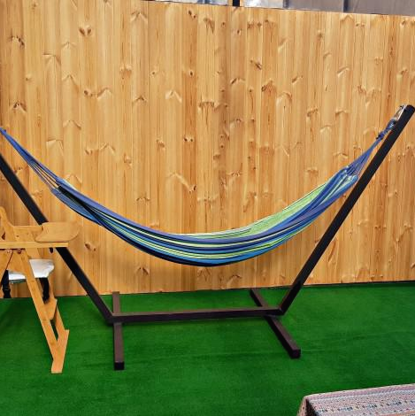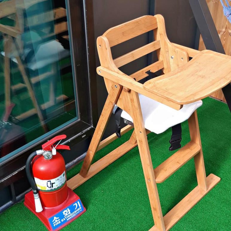 우리가 묵었던 202호 저희가 묵은 202호는 기본이 성인 2명이고 최대 4명까지 가능해요. 물론 추가 금액은 발생하고요! 가족들끼리도 오셨던데, 이렇게 아기의자까지 있는 거 보면 손님층이 다양한 듯 했어요. 한쪽에 해먹도 있어서 누우려다가 찢어질 거 같아서 포기했어요. 시무룩!