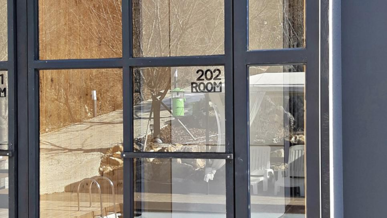 저희가 묵은 202호 보여드릴게요. 문부터 센스 넘치죠.