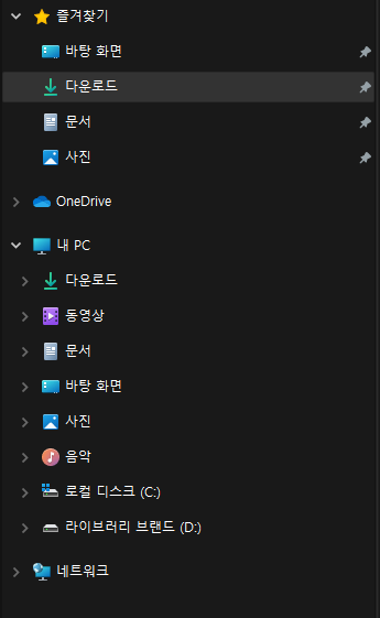 이게 폴더에 왼쪽 바에 있는 아이콘 모습이다. 윈도우 전체 캡쳐해서 찍어서 업로드하면 안예쁘니까.