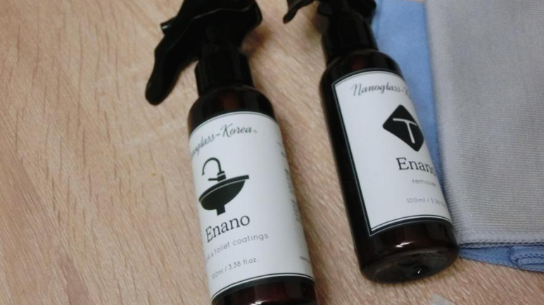 그래서 나노코팅은 나노 인증기관은 환경부나 KTR등 믿을 수 있는 기관에서 인증받은 안전한 코팅제예요. 화장실 냄새도 이걸로 다 잡아줘요. 세균을 억제해서 냄새의 원인균을 제거해주는 제품 오염도 차단시키고 뿌리고 닦기만 해도 화장실이 달라졌어요!